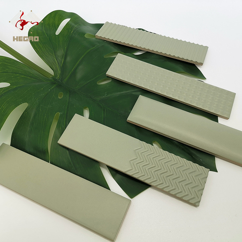 फोशान फैक्ट्री मेट्रो सिरेमिक टाइल बाथरूम/रसोई चमकदार या मैट ग्रीन वॉल टाइल आकार में 75*300 मिमी